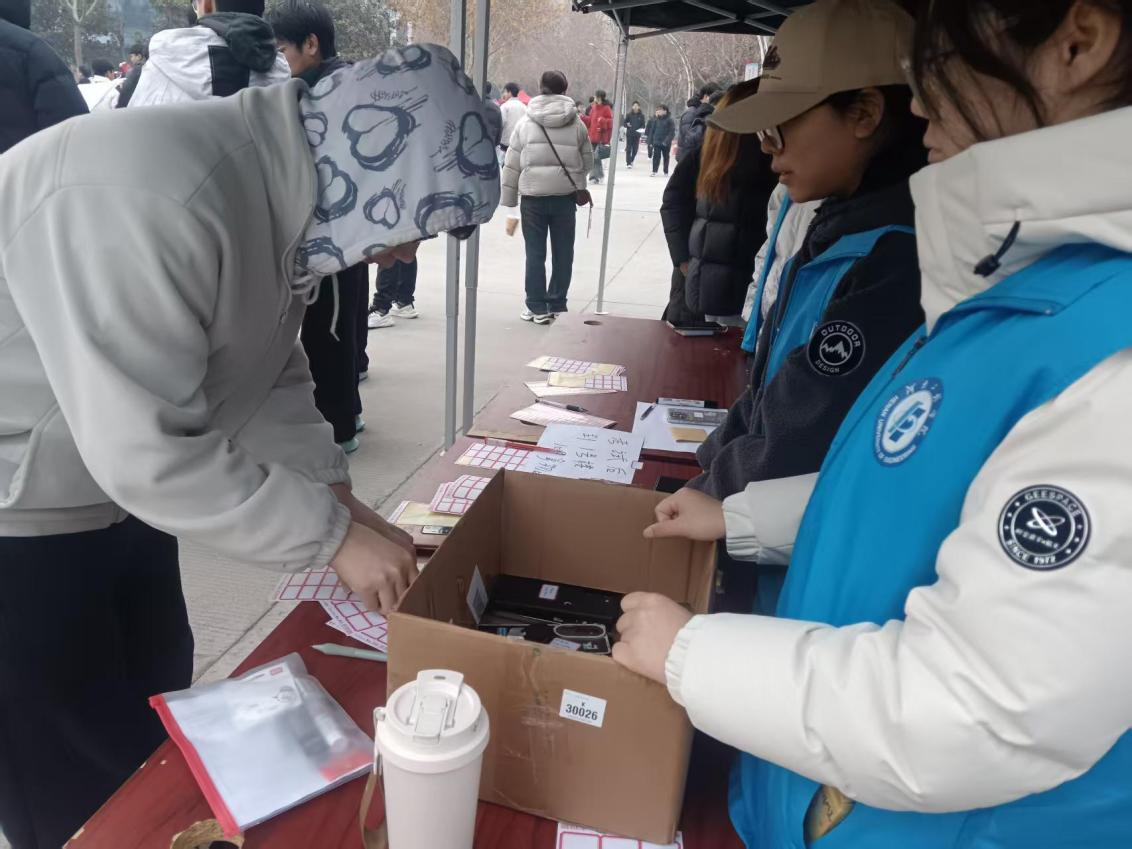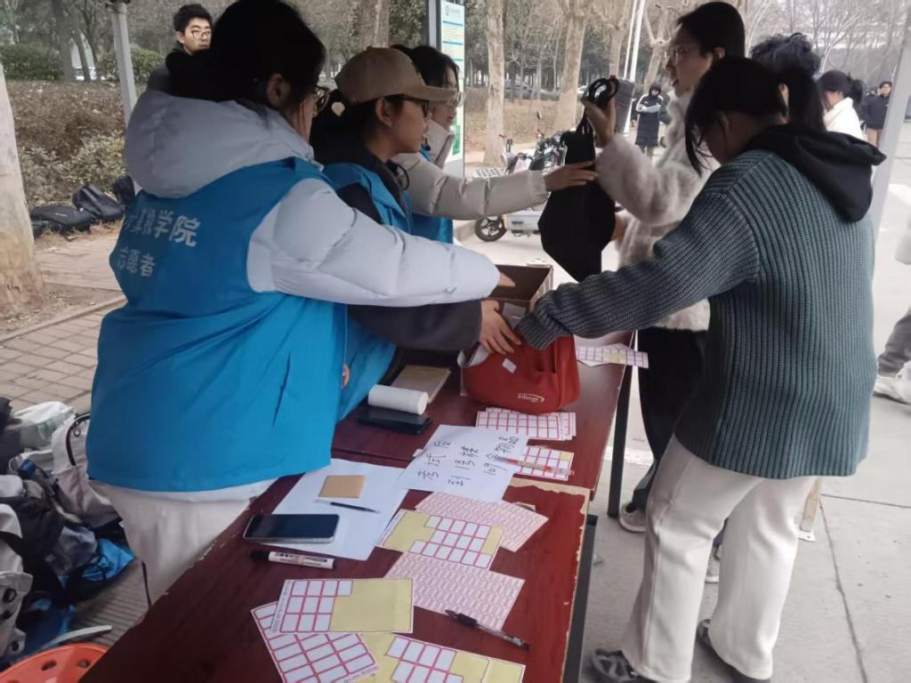 活动前,党员志愿者们精心规划服务点位,准备了物品保管袋、登记本、应急药品等物资。考试当天,志愿者们提前到岗,有序搭建志愿服务台,明确分工开展工作。核心服务环节中,志愿者为考生提供手机、背包等个人物品临时保管服务,细致核对考生信息并做好登记,确保物品安全可控。此外,志愿者们还在考点周边引导考生有序入场,用贴心服务为考生缓解紧张情绪。