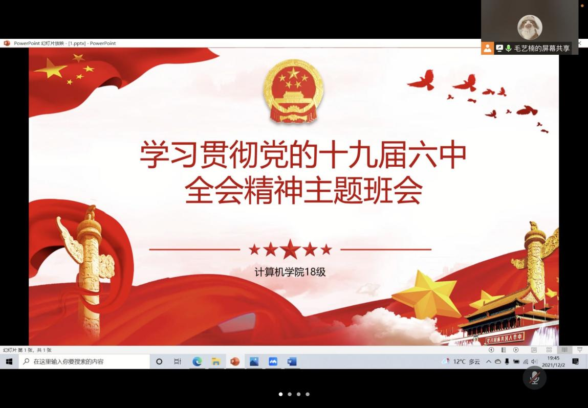 为了全面学习贯彻党的十九届六中全会精神,深刻领悟决议的重要意义,12月2日至3日,计算机学院面向全体学生开展了“学习贯彻党的十九届六中全会精神”主题班会。此次主题班会采取线上和线下两种形式进行,由各年级辅导员主持领学。