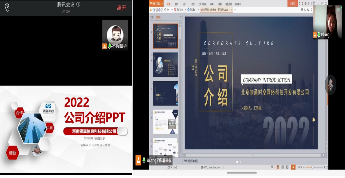 2022年3月24日下午和4月26日上午,珍岛信息技术股份有限公司、老鹰半导体公司、河南领晟信息科技有限公司和北京物通时空网络科技开发有限公司等,通过线上会议针对计算机学院进行春季校园专场招聘宣讲活动,参加本次活动的有公司相关负责人以及我院2022届毕业生。