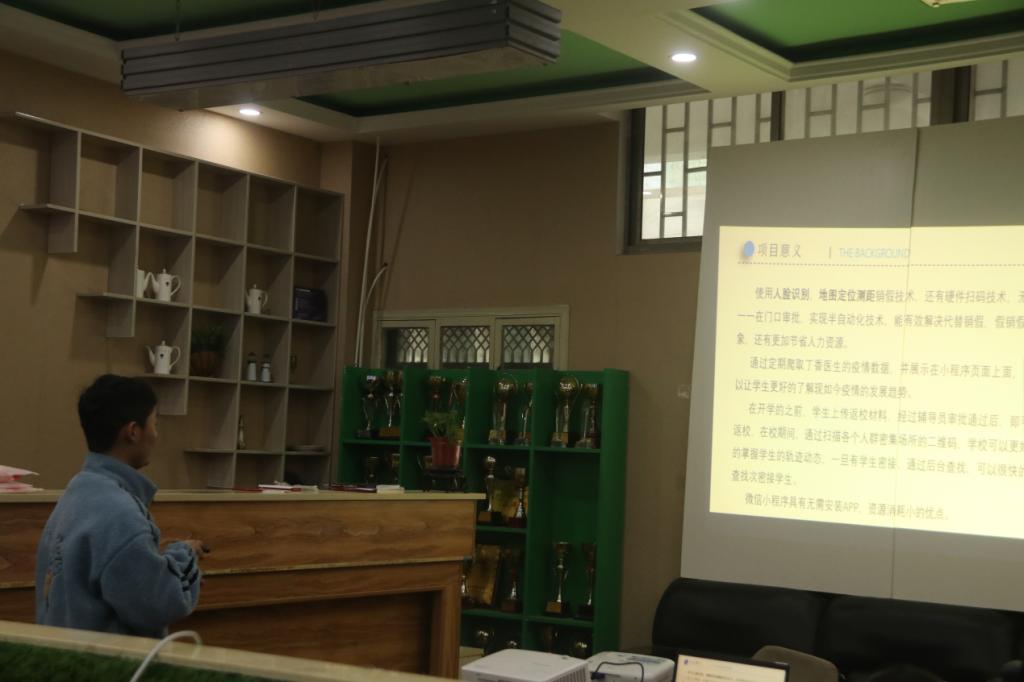 参赛选手依次进行作品介绍,详细的讲解了本组项目的背景意义、功能及优势。陈书记和各位老师进行一一指导和点评,经过老师们的严格审核和评比,推选出优秀的作品,希望同学们结合意见对PPT和项目进行修改,为后续的校赛做好充分准备,进一步完善和提升作品的质量。