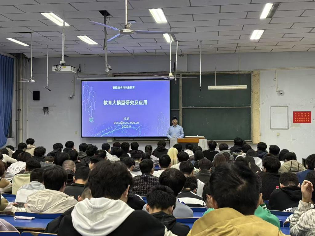 9月24日下午6时30分,华中师范大学伍伦贡联合研究院院长杜旭教授于6J101教室开展“智能技术与未来教育”专题讲座,聚焦前沿教育科技趋势,吸引众多学子到场聆听。