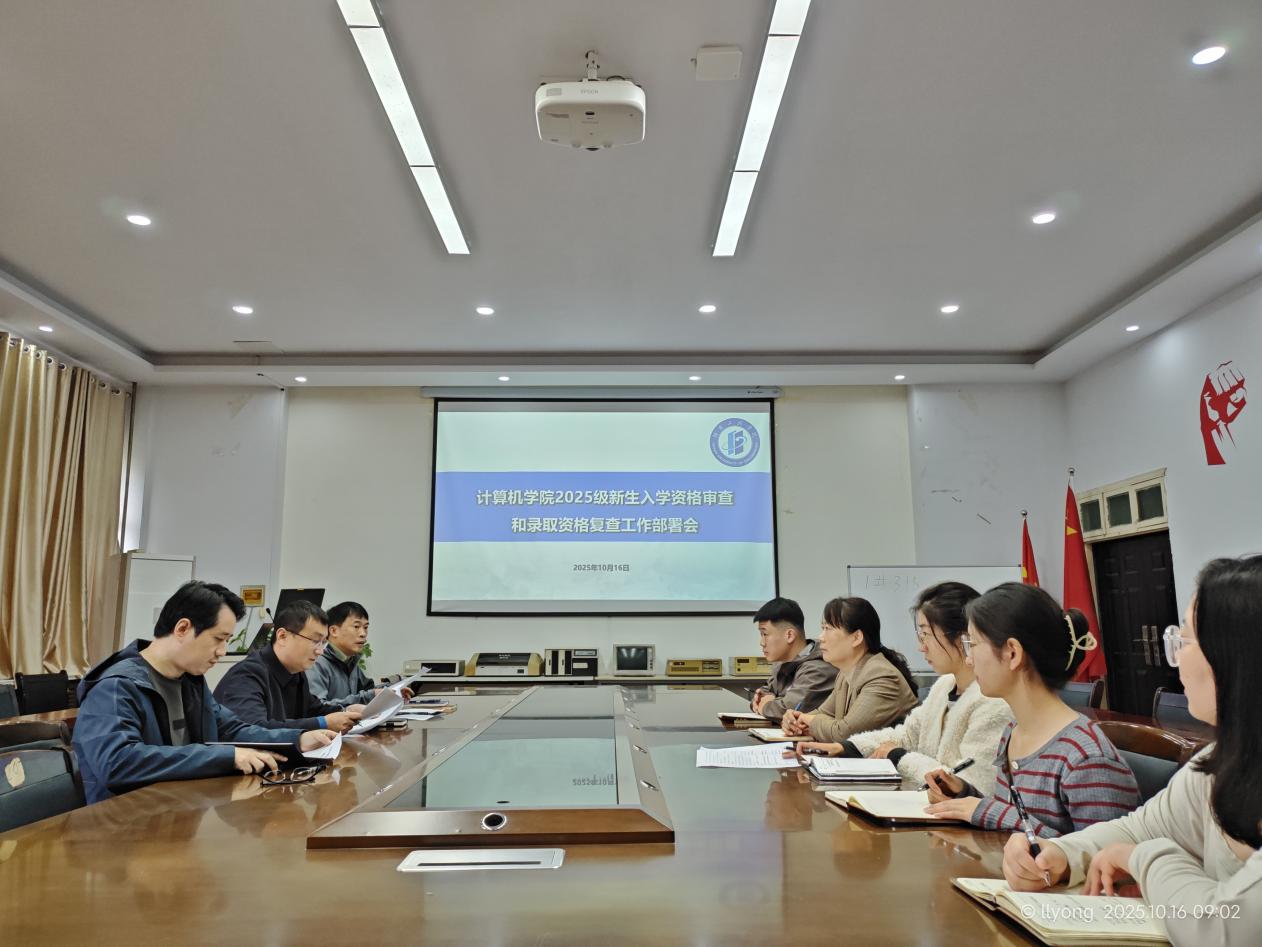 为进一步规范新生入学资格审查工作,切实保障学生合法权益,维护学校招生工作的公平公正,10月16日上午,计算机学院召开了2025级新生入学资格审查和录取资格复查工作部署会议。院长李松阳、副院长于海鹏、副书记陈亮及教务办、学工办老师参加了此次会议,学校第二巡查组吴珍、贺娜也出席了会议。